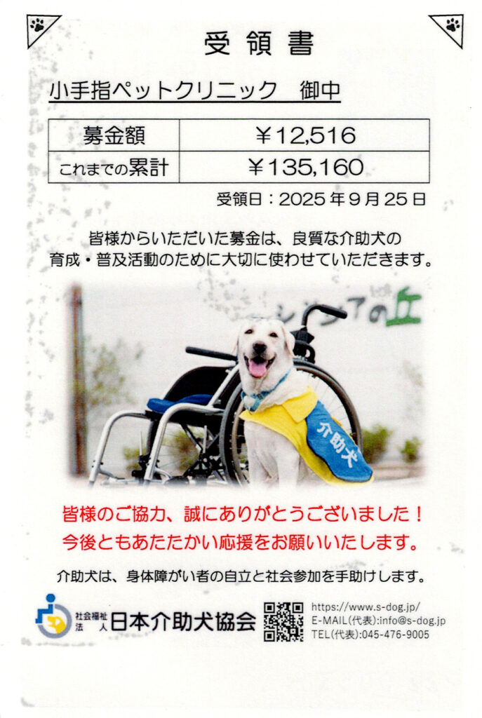 他でもない『日本介助犬協会』の募金箱なのですが、先日皆様からの募金を協会へ送金しました。
