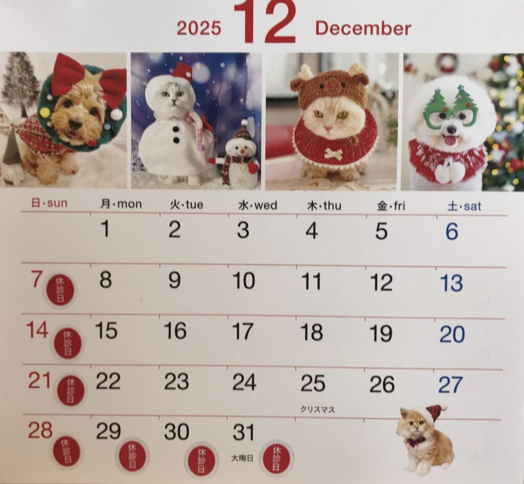 12月29(日)から1月4日(日)は休診とさせていただきます。